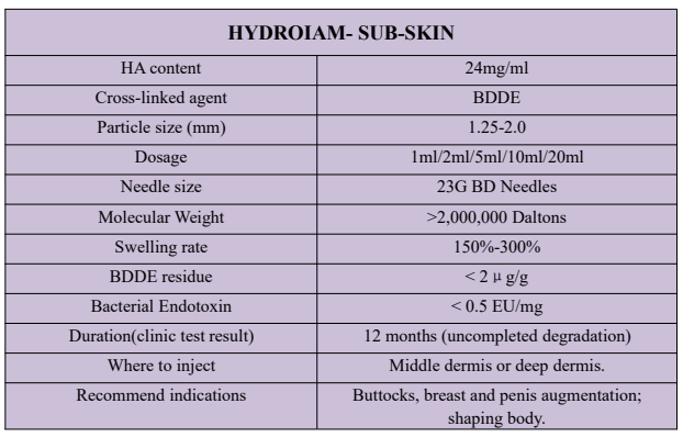 Hydroiam is a series of cross-linked hyaluronic acid dermal fillers that are used to treat signs of aging. The products are developed to smooth outlines and wrinkles, shape facial contours and add volume to lips. Hydroiam hyaluronic acid gel is made from non-animal hyaluronic acid, and its formulation is adapted to treat all types of wrinkles, from finest lines to the deepest wrinkles. It is safe and effective to treat the entire face creating a more beautiful and youthful look.